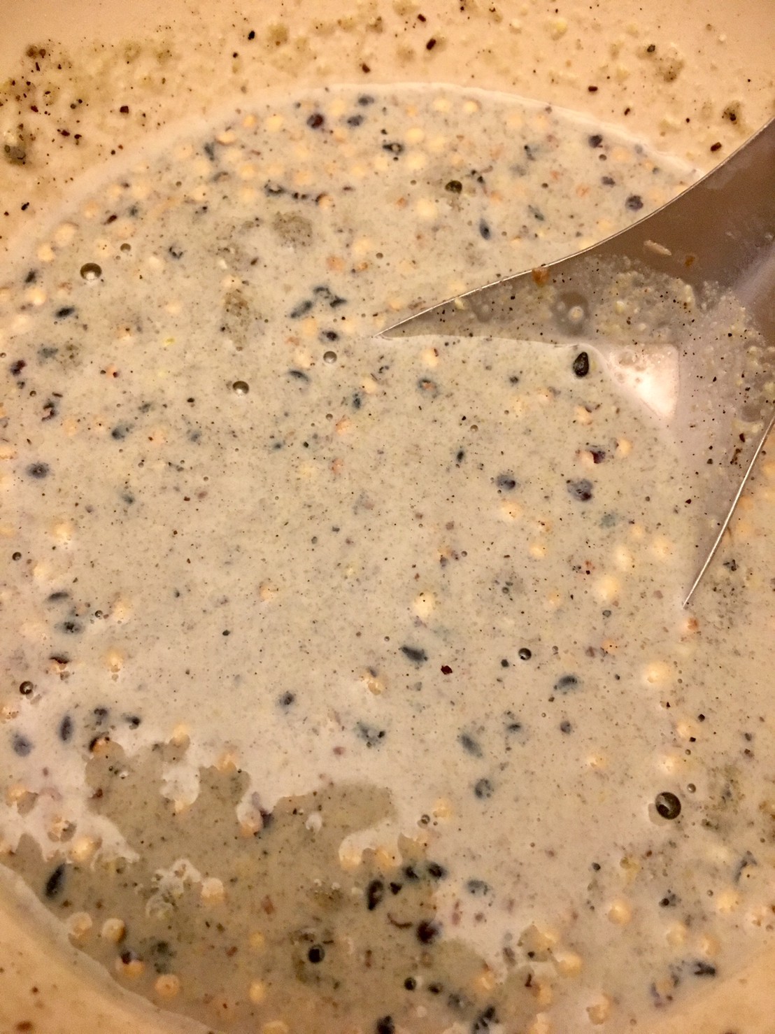 老實說,喝第一口的感想是,好難喝……,完全無糖無甜味,又熱熱稠稠的,感覺很像在吃寶寶副食品,於是我把水量增加,變稀後有比較好入口,但還是不太喜歡。